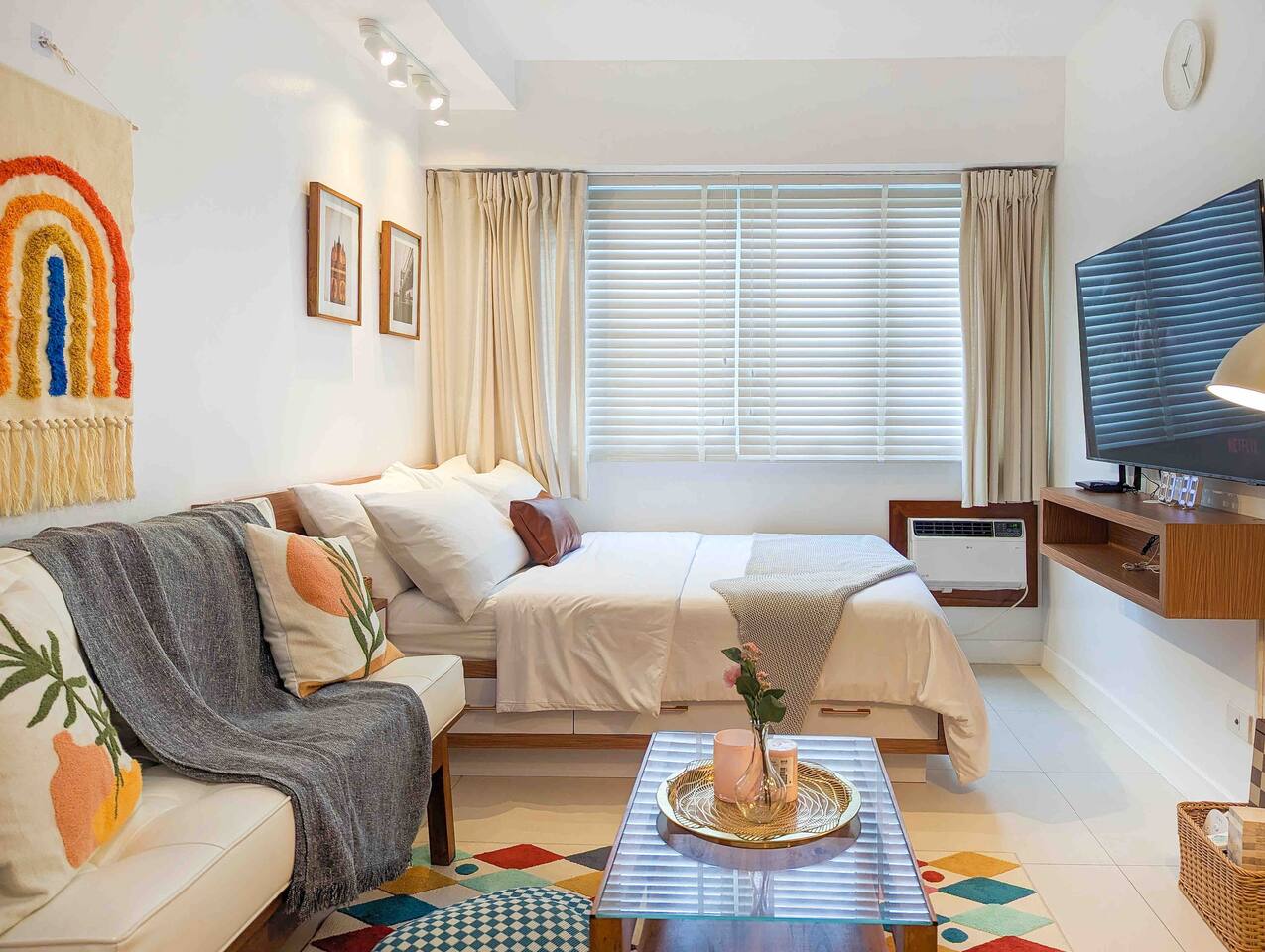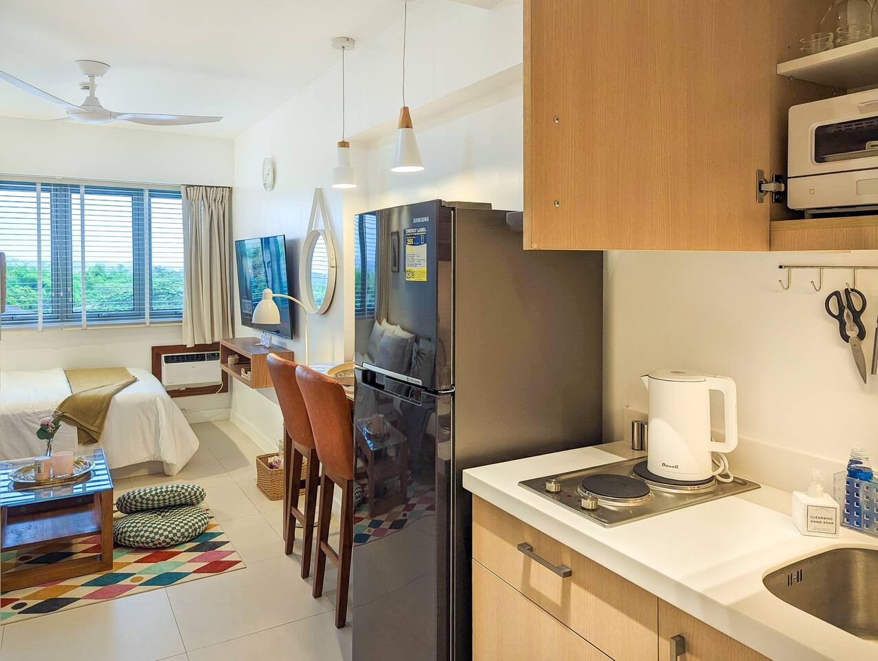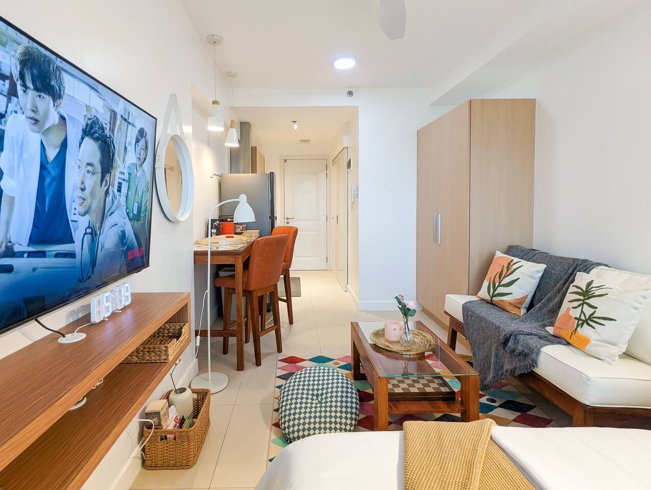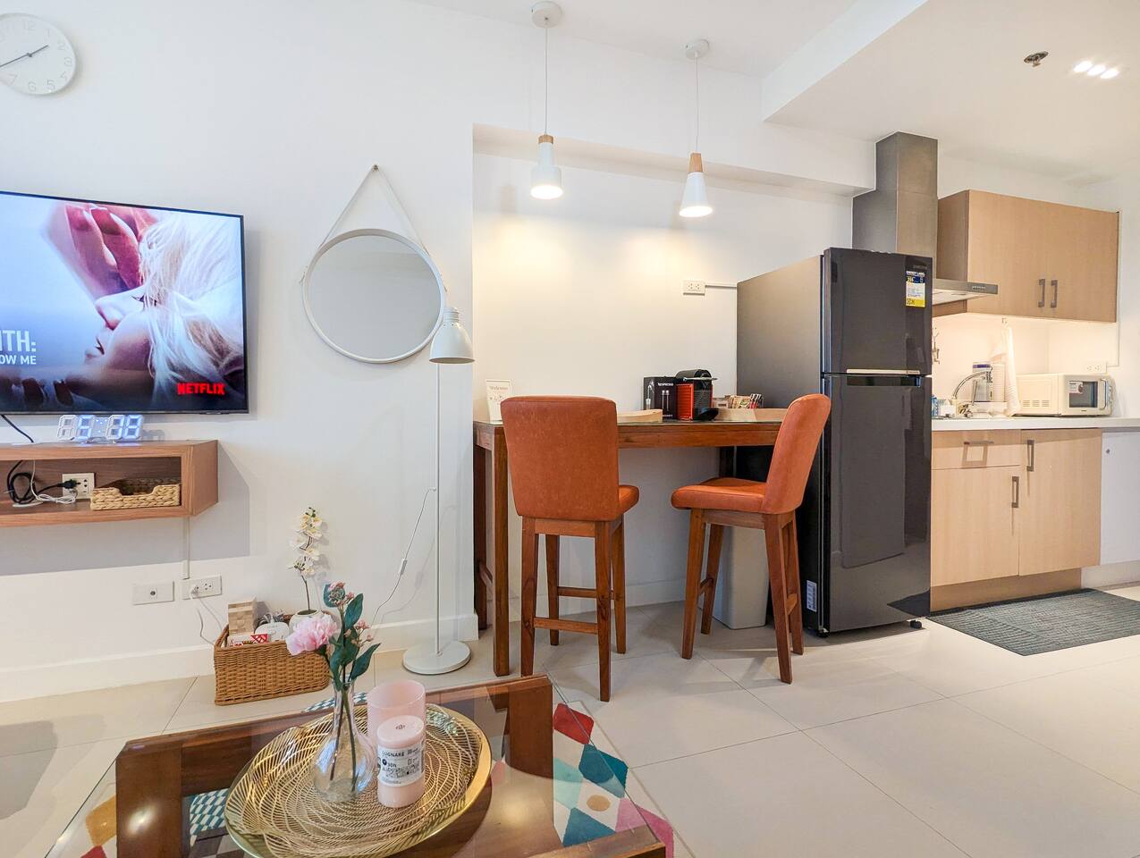 This 20 square meter-studio condo is maximized to have a quality and functional space to suit even the long stays. It's ideal for 2 guests, but we can accommodate a 3rd person (child) for an extra nightly fee, prior advice is required. If you are more than 2 people, we also have another studio unit in the same building: airbnb.com/h/theresidences-studio1612 ✔ FREE RESERVED PARKING We provide 1 free reserved parking space for the guest's entire stay. It’s conveniently located in the same building as our condo and easily accessible via the elevators. Vehicle details need to be forwarded to host atleast 1 day before arrival. ✔ FREE NETFLIX & DISNEY+ ON SMART TV In the mood for binge watching movies and series? Watch all you like! Our unit has a 55 inches 2022 4K Samsung Smart TV with free access to our already logged-in accounts for Netflix and Disney+ :) ✔ FREE WIFI The internet subscription promises a speed of up to 200 mbps with Globe Broadband. In case something goes wrong, we provide a back up standalone modem with Smart sim that runs in the range of 50-70mbps. Mobile data signal is also strong in the area. ✔ FULLY EQUIPPED KITCHEN You can cook your meals if you feel like staying in. You can be at home and feel at home, without the need to go out too often to market. You can store whatever you need for the duration :) ✔ Fully equipped kitchen ✔ Cooking Stove (hot-plate) ✔ Range hood / Exhaust ✔ Large full-sized fridge with freezer ✔ Kitchen Sink ✔ 2nd small faucet on right-hand side for filtered drinking water ✔ Rice Cooker (electric) ✔ Electric kettle ✔ Bread toaster ✔ Microwave ✔ Coffee French press ✔ Complete with plates, bowls, saucers, coffee cups, tea cups, regular glasses, wine glasses, ice bucket, pitchers, silverware, many more! Alternatively, guests can order any time from Grab and Food panda delivery apps. There are many fast food and restaurants you can order from and delivered straight to the ground floor lobby :) ✔ BATHROOM W/ COMPLIMENTARY TOILETRIES — Hot, Warm, & Cold Shower — Sink, Mirror and Shelf — Toilet with Bidet — Bath Towel for each guest — Bathroom essentials include rolls of tissue, cotton, ear buds, shampoo, shower gel, wash cloths, bath towels, toothpaste and a little extra for guest convenience :) ✔ DOUBLED-SIZED BED Our bed and the linens are carefully selected to help you sleep like a baby. Our mattress is topped with 2" memory foam. This is matched by 4 down alternative pillows and very soft cotton fabric to wrap around during sleep time. You can go about your day full of energy from having a restful sleep. ✔ FREE MID-STAY CLEANINGS For guests staying atleast 5 nights, we provide free cleaning and complimentary change of linens, sheets, and towels in the middle of your stay. This shall be scheduled at the guest's preferred time in advance. Our staff may be required to travel from a distant condo location and will need to be scheduled beforehand. For cleanings outside of schedules or upon guest's request, we charge a standard fee of 700 PHP for a 2-hour cleaning that also includes changing of sheets and towels.