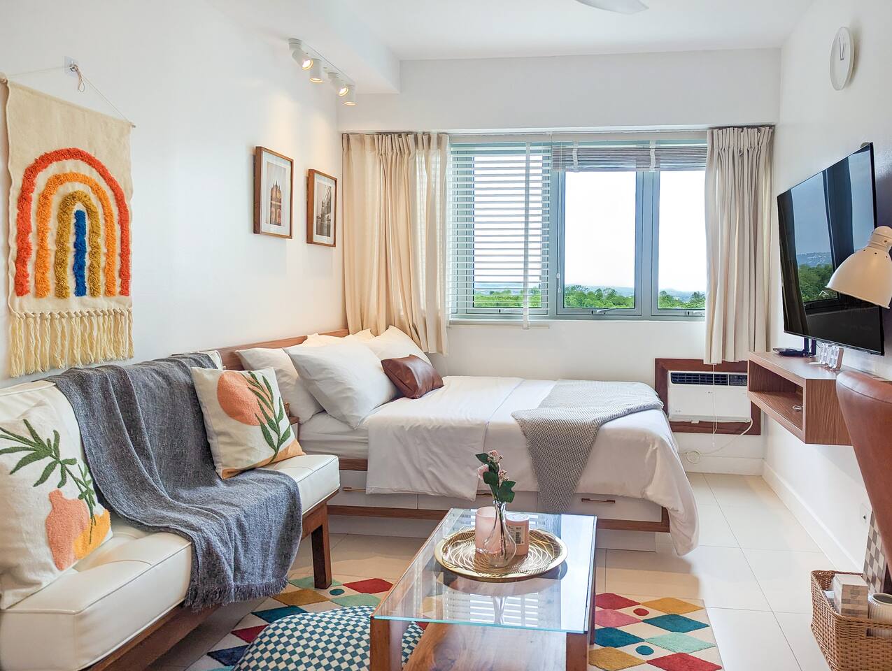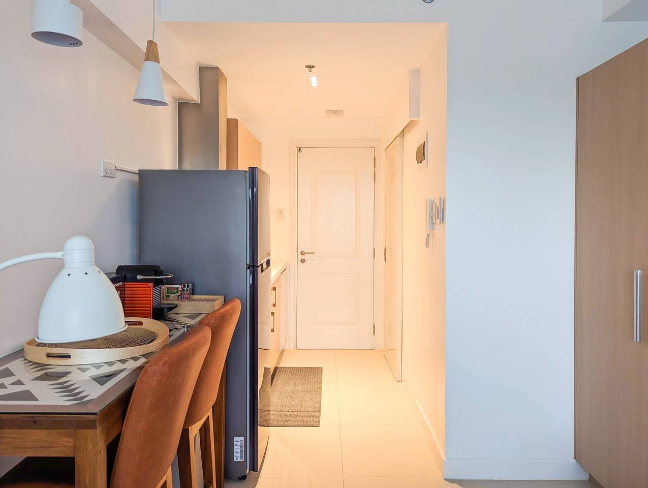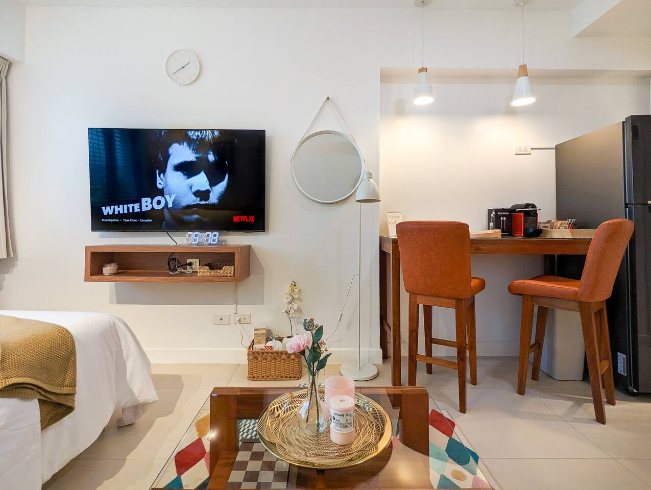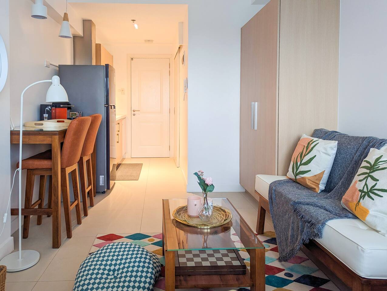 This 20 square meter-studio condo is maximized to have a quality and functional space to suit even the long stays. It's ideal for 2 guests, but we can accommodate a 3rd person (child) for an extra nightly fee, prior advice is required. If you are more than 2 people, we also have another studio unit in the same building: airbnb.com/h/theresidences-studio1612 ✔ FREE RESERVED PARKING We provide 1 free reserved parking space for the guest's entire stay. It’s conveniently located in the same building as our condo and easily accessible via the elevators. Vehicle details need to be forwarded to host atleast 1 day before arrival. ✔ FREE NETFLIX & DISNEY+ ON SMART TV In the mood for binge watching movies and series? Watch all you like! Our unit has a 55 inches 2022 4K Samsung Smart TV with free access to our already logged-in accounts for Netflix and Disney+ :) ✔ FREE WIFI The internet subscription promises a speed of up to 200 mbps with Globe Broadband. In case something goes wrong, we provide a back up standalone modem with Smart sim that runs in the range of 50-70mbps. Mobile data signal is also strong in the area. ✔ FULLY EQUIPPED KITCHEN You can cook your meals if you feel like staying in. You can be at home and feel at home, without the need to go out too often to market. You can store whatever you need for the duration :) ✔ Fully equipped kitchen ✔ Cooking Stove (hot-plate) ✔ Range hood / Exhaust ✔ Large full-sized fridge with freezer ✔ Kitchen Sink ✔ 2nd small faucet on right-hand side for filtered drinking water ✔ Rice Cooker (electric) ✔ Electric kettle ✔ Bread toaster ✔ Microwave ✔ Coffee French press ✔ Complete with plates, bowls, saucers, coffee cups, tea cups, regular glasses, wine glasses, ice bucket, pitchers, silverware, many more! Alternatively, guests can order any time from Grab and Food panda delivery apps. There are many fast food and restaurants you can order from and delivered straight to the ground floor lobby :) ✔ BATHROOM W/ COMPLIMENTARY TOILETRIES — Hot, Warm, & Cold Shower — Sink, Mirror and Shelf — Toilet with Bidet — Bath Towel for each guest — Bathroom essentials include rolls of tissue, cotton, ear buds, shampoo, shower gel, wash cloths, bath towels, toothpaste and a little extra for guest convenience :) ✔ DOUBLED-SIZED BED Our bed and the linens are carefully selected to help you sleep like a baby. Our mattress is topped with 2" memory foam. This is matched by 4 down alternative pillows and very soft cotton fabric to wrap around during sleep time. You can go about your day full of energy from having a restful sleep. ✔ FREE MID-STAY CLEANINGS For guests staying atleast 5 nights, we provide free cleaning and complimentary change of linens, sheets, and towels in the middle of your stay. This shall be scheduled at the guest's preferred time in advance. Our staff may be required to travel from a distant condo location and will need to be scheduled beforehand. For cleanings outside of schedules or upon guest's request, we charge a standard fee of 700 PHP for a 2-hour cleaning that also includes changing of sheets and towels.