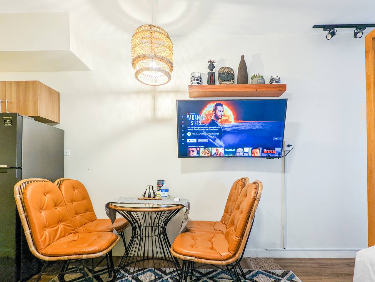 Our place comes with a portable radiator heating (plus heating fan) which you cannot find easily in many Baguio transient accommodations, not even in hotels. Bedroom & Living Room ✔ Full-Double-sized bed with memory foam and laced with soft-to-skin linens. You'd almost never want to get out of bed! ✔ Latest 50" Samsung Curve Smart TV with 4K resolution - with unlimited Netflix! ✔ 3-seater couch that serves as an extra single bed for a third guest ✔ 4-seater dining table Bathroom ✔ Bath Towels for each guest ✔ Toiletries (shampoo, shower gel, toothpaste, hand soap, tissues) + some extras to help you settle in Fully Equipped Kitchen ✔ Newly installed appliances — Full-size Samsung inverter fridge — Microwave — Toaster — Electric kettle — Rice cooker — Induction cooker/stove with a frying pan and a medium-sized pot, ladles and knives with chopping boards Please note that we allow cooking but with limitations mainly to keep the apartment in pristine condition. ✔ Along with the necessities for a complete dining experience — Plates, bowls, saucers + food storage glassware — Drinking cups/glasses — Coffee mugs — Beer glasses, wine glasses, shot glasses — Ice bucket — Wine or champagne bucket ✔ New French press coffee maker. Don't wait to buy freshly-ground special, locally-sourced coffee beans from Baguio's public market. Complete your Baguio experience with some coffee breaks! ✔ 2-stage water filter is installed for improved quality of drinking water from the tap. Yes, tap water is potable even without the water filter. Condo complies to gov't regulation, maintains and tests the water quality every single day. For extra sensitive guests, bottled water can be bought from stores outside. Buy the water before heading to the condo. ✔ Centralized water heating running into all faucets and shower from kitchen to bathroom. We've designed our place and operate with guest's ultimate comfort in mind. Everything you may need to maximize your enjoyment and relaxation can all be found at our place — we do our best to make you feel at home in Baguio :) _______________________________________ CURRENT BAGUIO TRAVEL ADVISORY - LEVEL 1 since March 9th — There are no longer any covid restrictions. EVERYONE can come. OTHER IMPORTANT REMINDERS: — Always follow minimum health & safety protocols, wear mask and observe distancing at all times. — Baguio is a no-smoking City — Vehicle number coding is being implemented from 7am to 7pm. Same number scheme as Metro Manila. — Observe existing city laws: No littering, no smoking, vehicle number coding within the prescribed perimeter. Please check Baguio Tourism or Baguio Visita's Official FB page for updated guidelines. BEFORE ARRIVAL: — As part of the condo's requirements, please send each guest’s government-issued IDs at least 2 days before arrival. (We will send instructions and assist you with any questions)