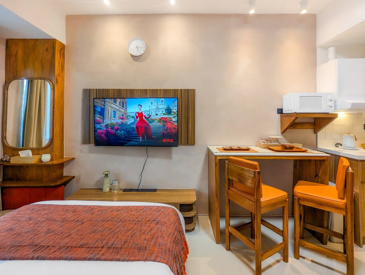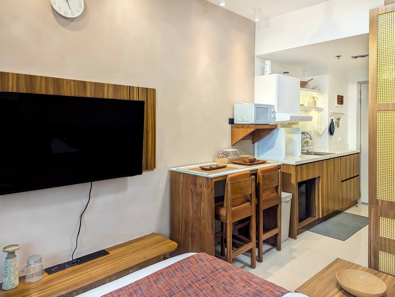This 20 square meter-studio condo is maximized to have a quality and functional space to suit even the long stays. It's ideal for 2 guests, but we can accommodate a 3rd person (child) for an extra nightly fee, prior advice is required. If you are more than 2 people, we also have another 2-bedroom unit in the same building: 2-bedroom listing link: airbnb.com/h/resteasy-grassresidences ➤ Guest Requirements for Short-Term Stays ✔ Government-issued IDs — For foreigners, ID required is a passport Requirements set by the condo admin must be completed and sent to us at-least 2 days before arrival — assistance and check-in instructions shall be provided once guest requirements are complete. ✔ PARKING There's pay parking in the complex. First 2 hours is 60 pesos and hourly fee is 20 pesos thereafter. ✔ FREE NETFLIX & DISNEY ON SMART TV In the mood for binge watching movies and series? Watch all you like! Our unit has a 50 inches 2024 UHD Samsung Smart TV with free access to our already logged-in accounts for Netflix and Disney+ :) ✔ FREE WIFI The internet subscription promises a speed of up to 100 mbps with Woofy. Mobile data signal is also strong in the area. ✔ FULLY EQUIPPED KITCHEN NOTE: We limit cooking for short-staying guests. From experience, it takes time to get rid of the odor from heavy cooking. Often, we get odor complaints from the next guests. In addition, we work hard to keep the place pest free. ✔ Range hood / Exhaust ✔ Mini fridge with freezer ✔ Water filtration for drinking ✔ Induction cooker (on request) ✔ Rice Cooker ✔ Electric kettle ✔ Bread toaster ✔ Microwave ✔ Complete with plates, bowls, saucers, coffee cups, tea cups, regular glasses, wine glasses, ice bucket, pitchers, silverware, many more! Alternatively, guests can order any time from Grab and Food panda delivery apps. There are many fast food and restaurants you can order from and delivered straight to the ground floor lobby :) For long-stay guests staying atleast 5 nights, we can offer additional cooking, but by request. Theadditional cooking set includes a medium frying pan, a compatible medium cooking pot, cooking ladles, and lastly, the single burner induction cooker. ✔ BATHROOM W/ COMPLIMENTARY TOILETRIES — Hot, Warm, & Cold Shower — Sink, Mirror and Shelf — Toilet with Bidet — Bath Towel for each guest — Bathroom essentials include rolls of tissue, cotton, ear buds, shampoo, shower gel, wash cloths, bath towels, toothpaste and a little extra for guest convenience :) ✔ DOUBLED-SIZED BED Our bed and the linens are carefully selected to help you sleep like a baby. Our mattress is topped with 2" memory foam. This is matched by 4 down alternative pillows and very soft cotton fabric to wrap around during sleep time. You can go about your day full of energy from having a restful sleep. ✔ FREE MID-STAY CLEANINGS For guests staying at least 5 nights, we provide free cleaning and complimentary change of linens, sheets, and towels in the middle of your stay. This shall be scheduled at the guest's preferred time in advance. Our staff may be required to travel from a distant condo location and will need to be scheduled beforehand. For cleanings outside of schedules or upon guest's request, we charge a standard fee of 700 PHP for a 2-hour cleaning that also includes changing of sheets and towels.